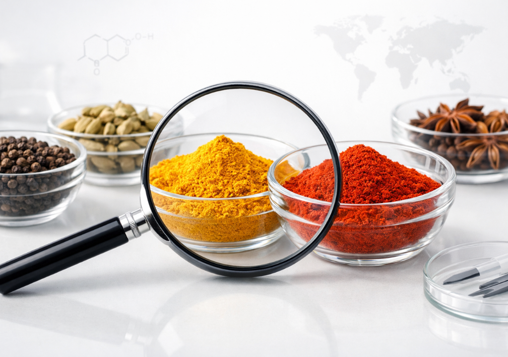 Naturally sourced red chilli, turmeric, aromatic cardamom, and premium cashews — processed under strict quality standards.